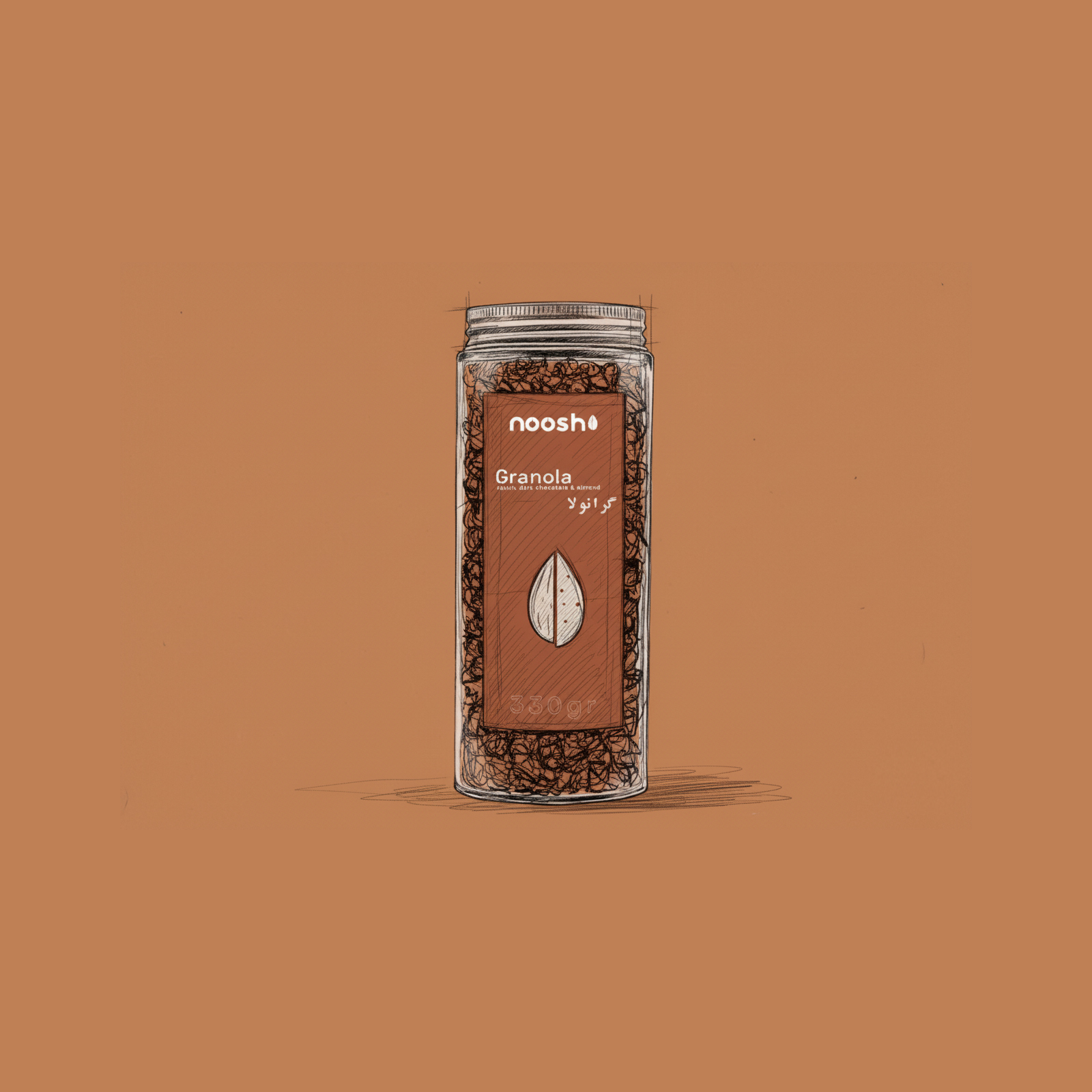 ترکیبی خوشطعم و انرژیزا از جو دوسر پرک شده با عسل طبیعی و روغن کنجد که با تکههای شکلات تلخ، بادام درختی و مویز غنی شده است.